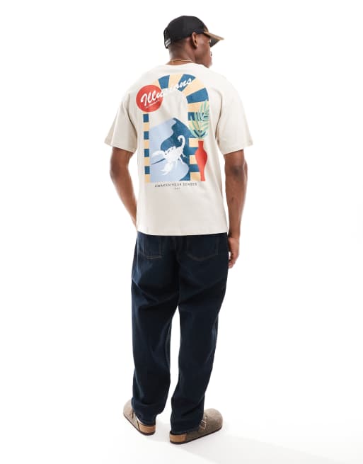 Jack & Jones – Beżowy T-shirt oversize z nadrukiem z motywem skorpiona na plecach