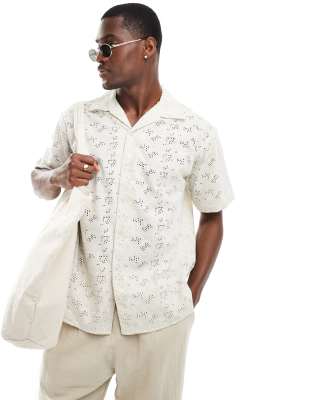 Jack & Jones – Biała koronkowa koszula o pudełkowym kroju
