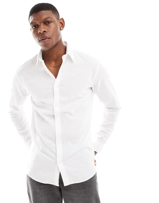 Jack & Jones – Biała lniana koszula z długim rękawem