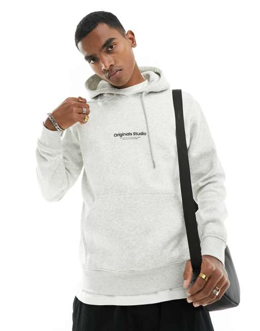 Jack & Jones – Biała melanżowa bluza oversize z kapturem i logo Originals