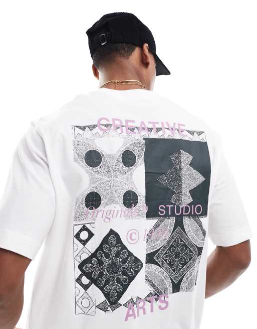 Jack & Jones – Biały T-shirt oversize z geometrycznym nadrukiem na plecach