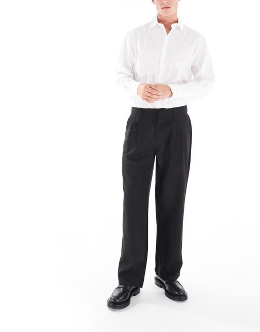 Jack & Jones – Bill – Czarne eleganckie spodnie o szerokim kroju z zakładkami