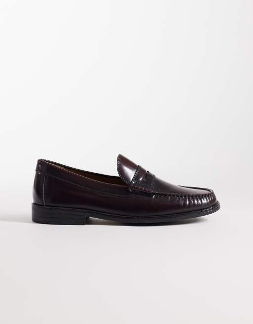 Jack & Jones – Bordowe skórzane loafersy penny