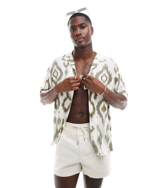 Jack & Jones – Ciemnozielona wzorzysta koszula oversize z kołnierzykiem kubańskim