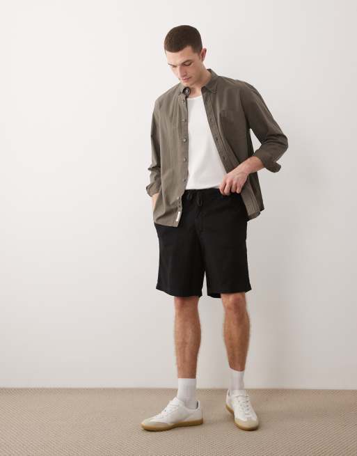 Jack & Jones – Czarne ściągane na sznurek szorty z domieszką lnu