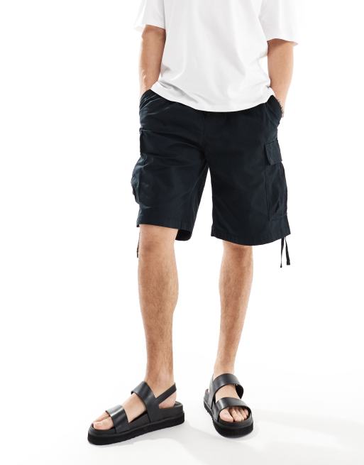 Jack & Jones – Czarne szorty bojówki o szerokim kroju z materiału ripstock