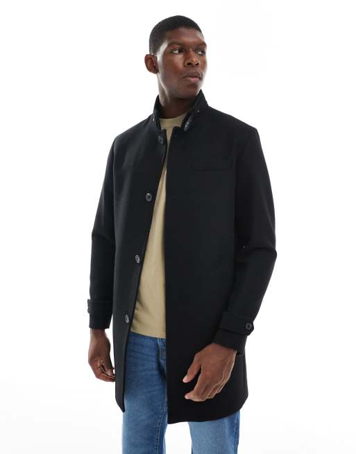 Jack & Jones – Czarny płaszcz z wysokim kołnierzem z mieszanki wełny