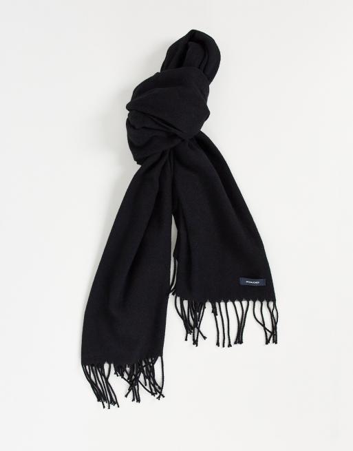 Jack & Jones – Czarny szal z dzianiny z frędzlami