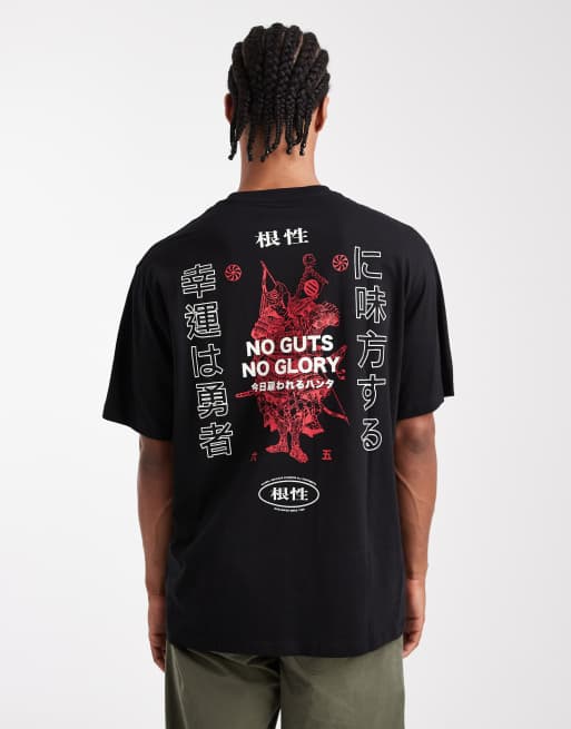 Jack & Jones – Czarny T-shirt oversize z japońskim nadrukiem na plecach