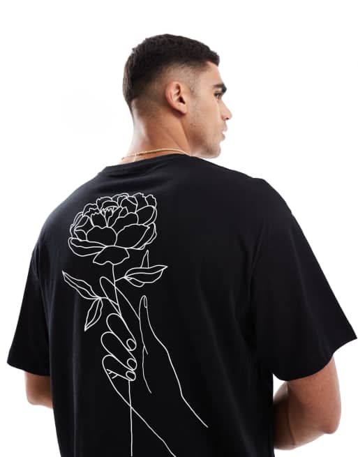 Jack & Jones – Czarny T-shirt oversize z nadrukiem z kwiatem na plecach
