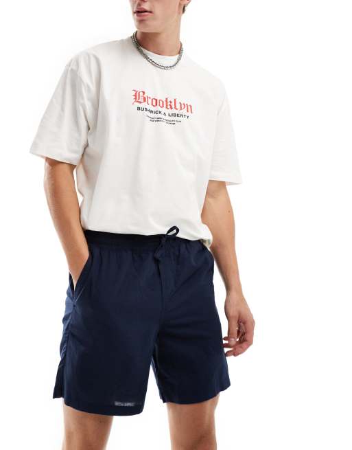 Jack & Jones – Granatowe ściągane na sznurek szorty lniane