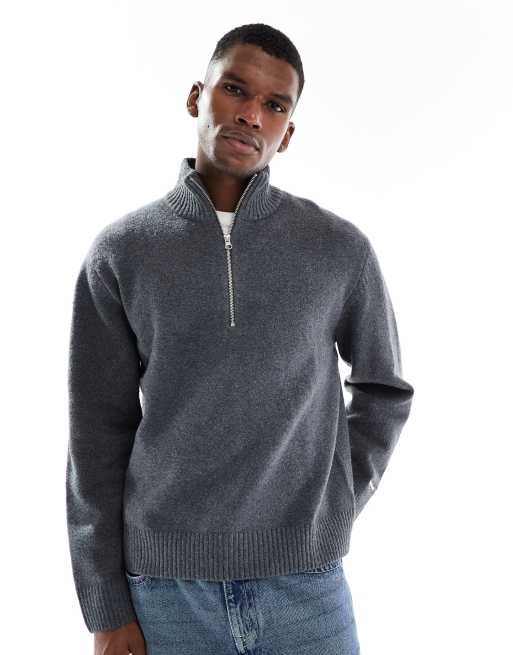Jack & Jones – Gruby ciemnoszary sweter oversize z zapięciem na suwak pod szyją