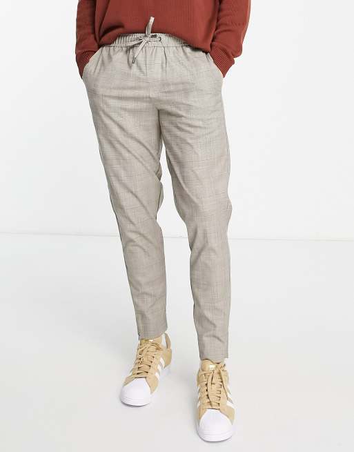 Jack & Jones Intelligence – Beżowo-niebieskie eleganckie spodnie ze zwężanymi nogawkami i wzorem w kratę