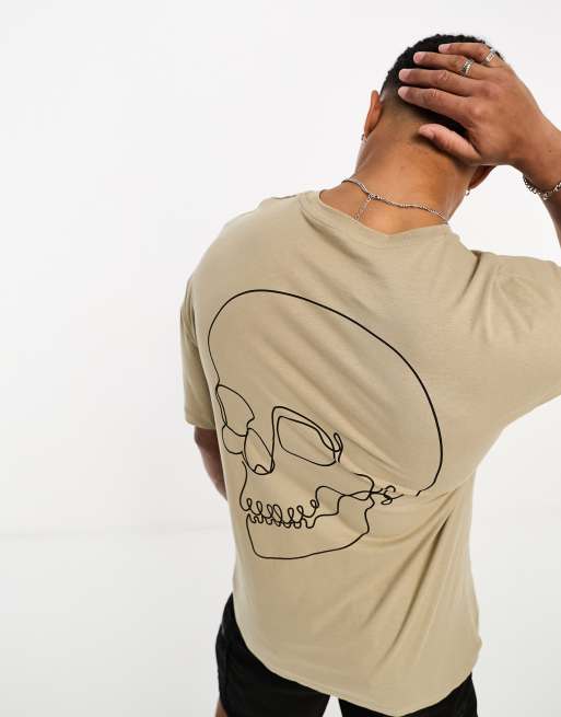 Jack & Jones Originals – Beżowy T-shirt oversize z nadrukiem czaszki na plecach
