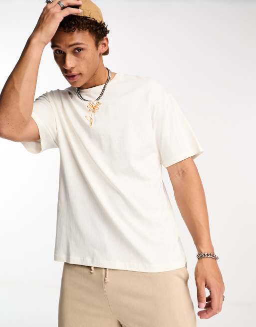 Jack & Jones Originals – Biały T-shirt oversize z wyhaftowaną różą
