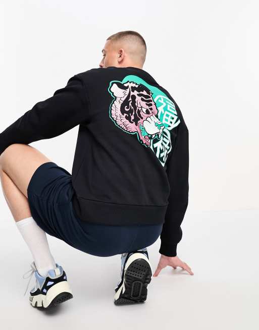 Jack & Jones Originals – Czarna bluza dresowa oversize z nadrukiem tygrysa na plecach