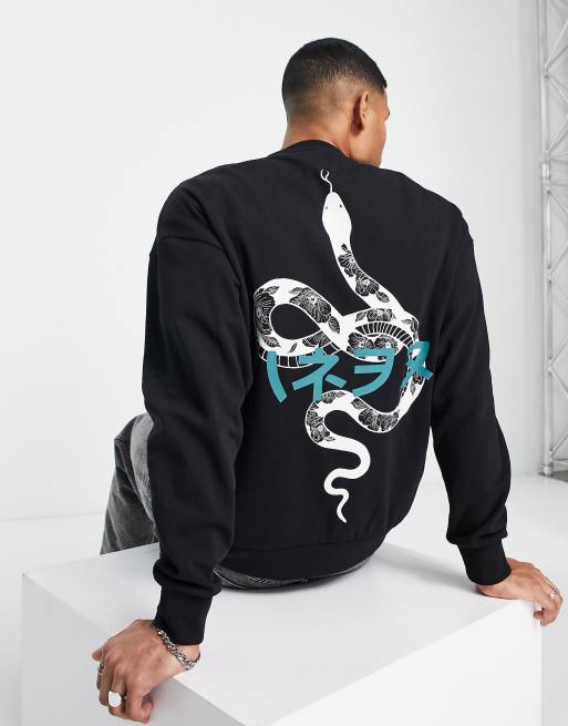 Jack & Jones Originals – Czarna bluza dresowa oversize z nadrukiem węża na plecach