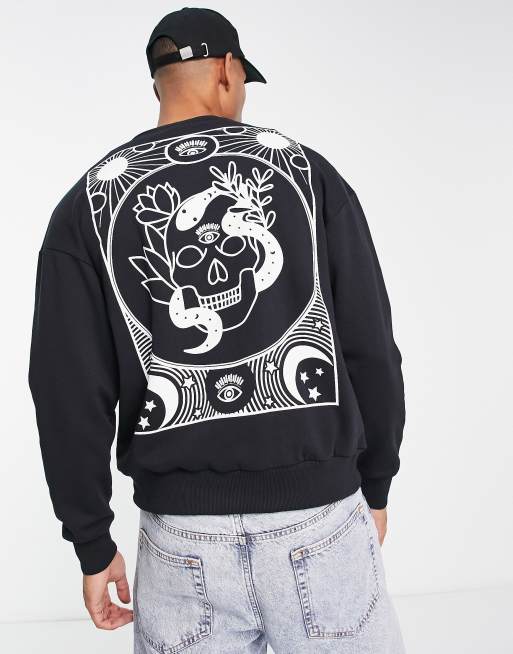 Jack & Jones Originals – Czarna bluza oversize z nadrukiem czaszki na plecach