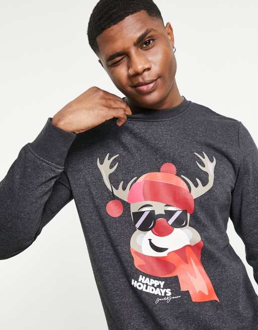 Jack & Jones Originals – Czarna bluza świąteczna z nadrukiem renifera