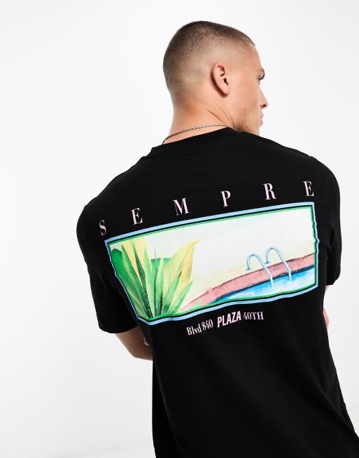 Jack & Jones – Originals – Czarny T-shirt oversize z nadrukiem basenu na plecach
