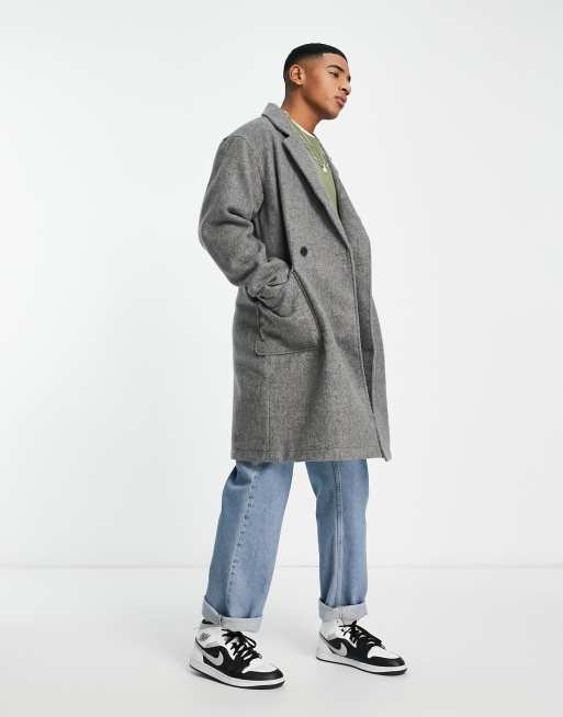Jack & Jones Originals – Dwurzędowy płaszcz w szarym melanżowym kolorze