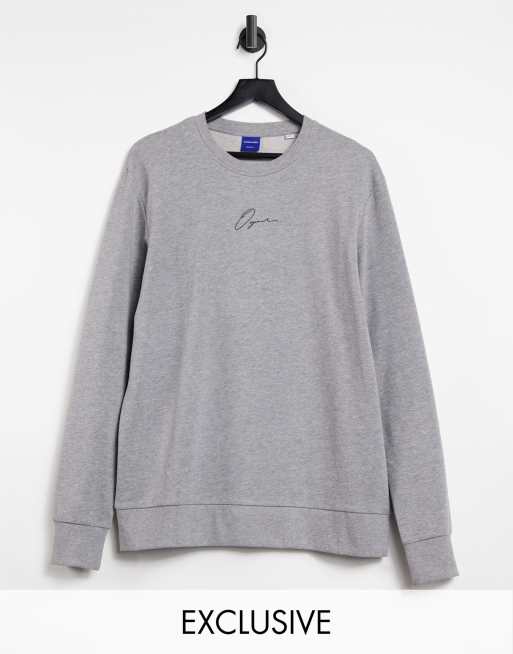 Jack & Jones Originals – Szara bluza z okrągłym dekoltem i logo w formie napisu – tylko w ASOS