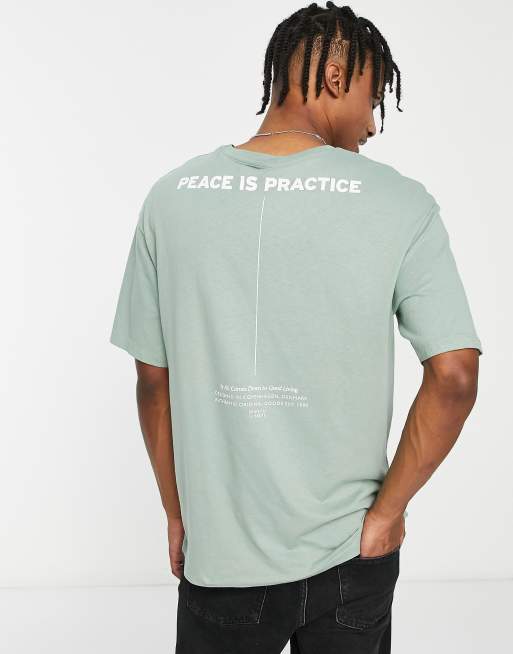 Jack & Jones Originals – Szałwiowy T-shirt oversize z nadrukiem „Peace” na plecach