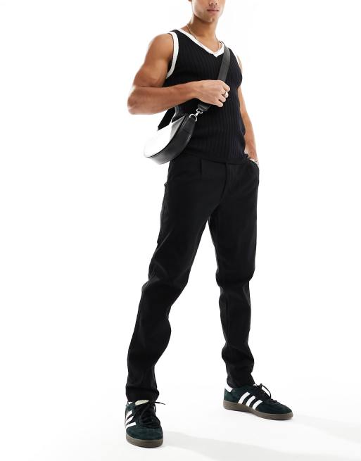 Jack & Jones – Plisowane z przodu zwężane czarne chinosy o krótkim fasonie