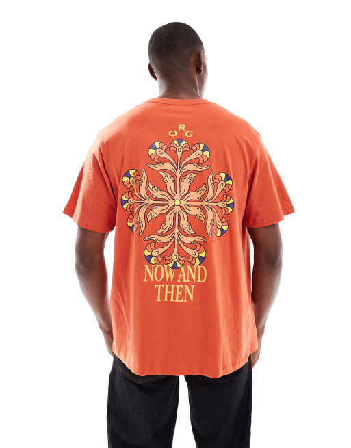 Jack & Jones – Pomarańczowy T-shirt oversize z nadrukiem „Now and then” na plecach
