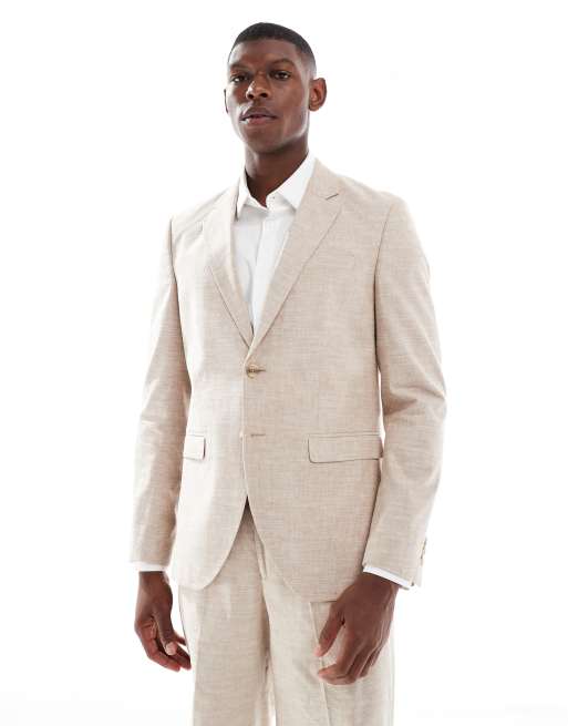 Jack & Jones Premium – Dopasowana beżowa marynarka garniturowa z mieszanki lnianej