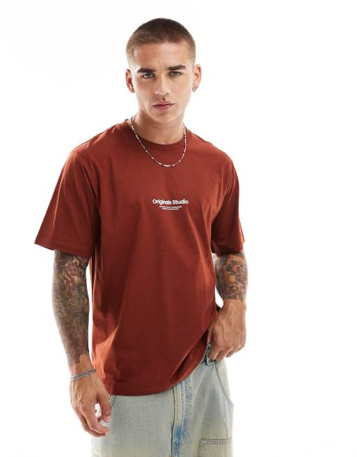 Jack & Jones – Rdzawoczerwony T-shirt oversize z logo Originals