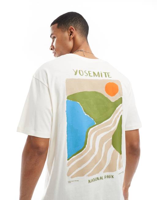 Jack & Jones – T-shirt oversize w kolorze złamanej bieli z grafiką Yosemite na plecach