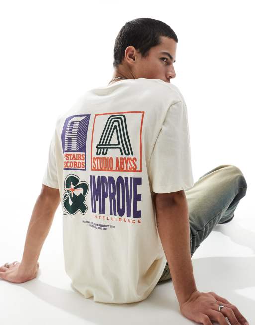 Jack & Jones – T-shirt oversize w kolorze złamanej bieli z nadrukiem w stylu retro na plecach