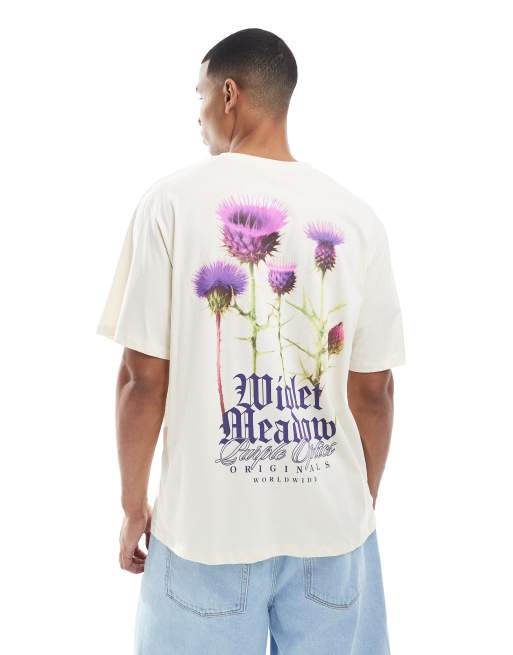 Jack & Jones – T-shirt oversize z nadrukiem z napisem „Violet Meadow” na plecach