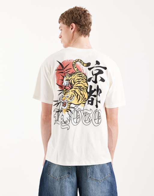 Jack & Jones – T-shirt w kolorze złamanej bieli, z nadrukiem tygrysa na plecach