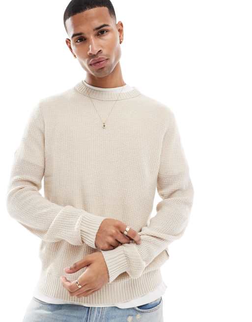 Jack & Jones – Teksturowany beżowy sweter z okrągłym dekoltem