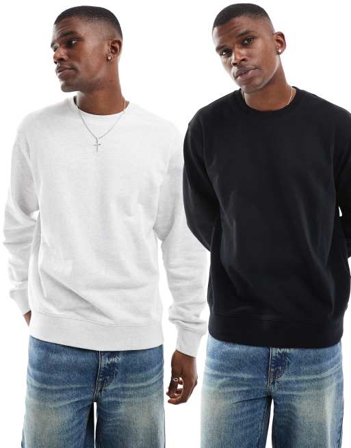 Jack & Jones – Zestaw 2 bluz super oversize z okrągłym dekoltem w kolorach czarnym i białym melanżowym