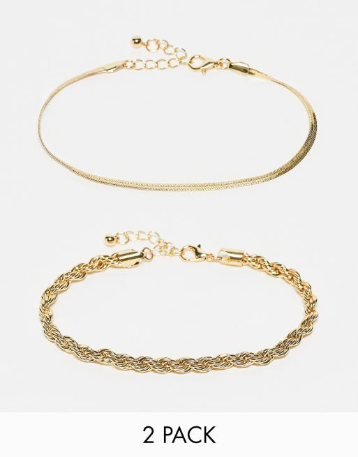 Jack & Jones – Zestaw 2 bransoletek ze skręconego i grubego łańcuszka w odcieniu złota