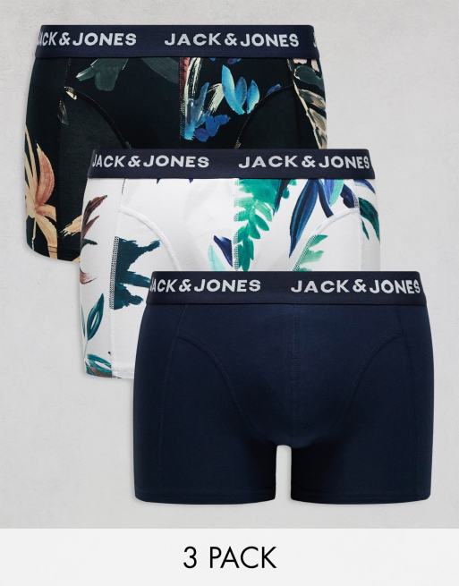 Jack & Jones – Zestaw 3 par bokserek z kwiatowym nadrukiem w kolorze białym