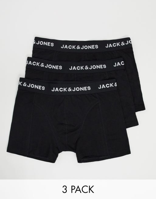 Jack & Jones – Zestaw 3 par czarnych bokserek z gumką z logo