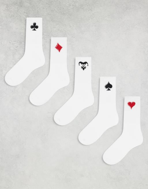 Jack & Jones – Zestaw 5 par białych skarpetek z nadrukiem z karcianym motywem