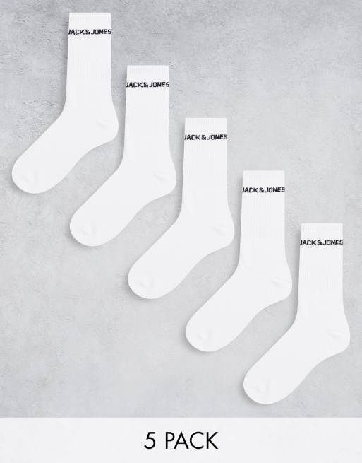 Jack & Jones – Zestaw 5 par białych sportowych skarpetek z logo