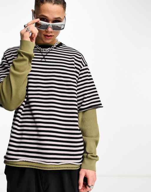 Jaded London – Kolorowy postrzępiony T-shirt dwuwarstwowy w paski