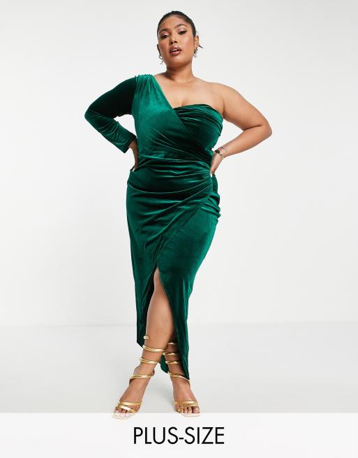 Jaded Rose Plus – Exclusive – Sukienka w kolorze szmaragdowozielonym na jedno ramię z rozcięciem