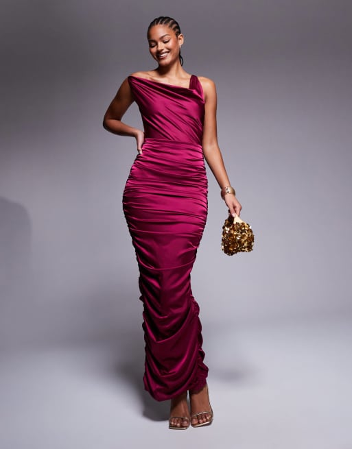 Jaded Rose Tall – Bordowa marszczona sukienka maxi z odkrytymi plecami