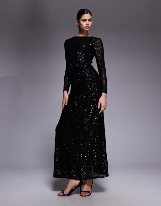 Jaded Rose – Czarna cekinowa sukienka maxi z marszczeniem