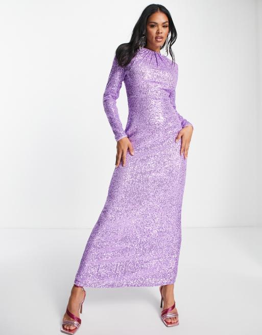 Jaded Rose – Fioletowa zdobiona cekinami sukienka maxi z długimi rękawami