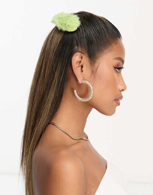 Jayley – Zielone spinki do włosów ze sztucznym futerkiem