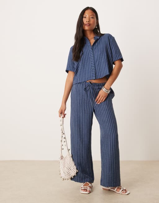 JDY Petite – Ciemnoniebieskie spodnie z szerokimi nogawkami w paski, część zestawu