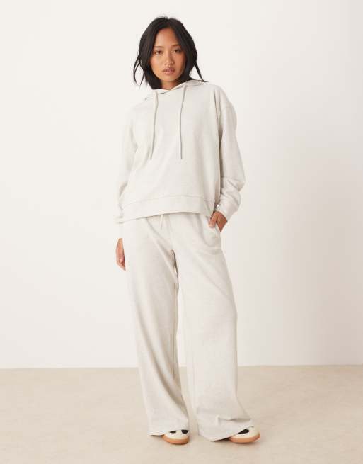 JDY Petite – Jasnoszary zestaw dresowy: bluza z kapturem i joggersy